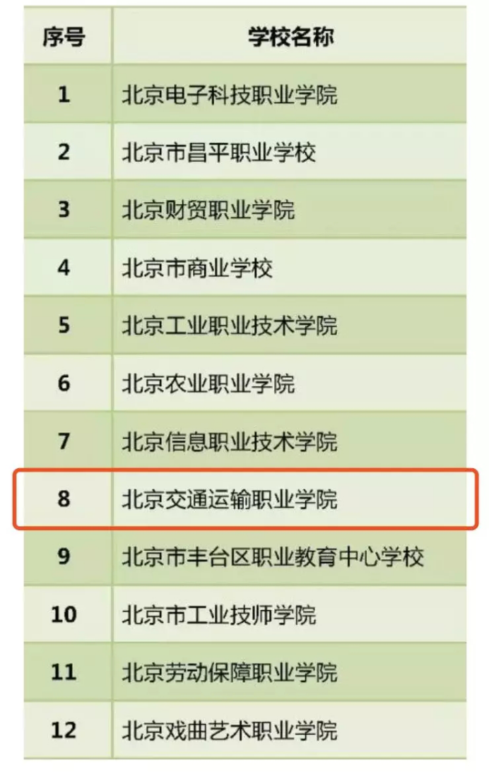 北京市特色高水平职业院校建设名单