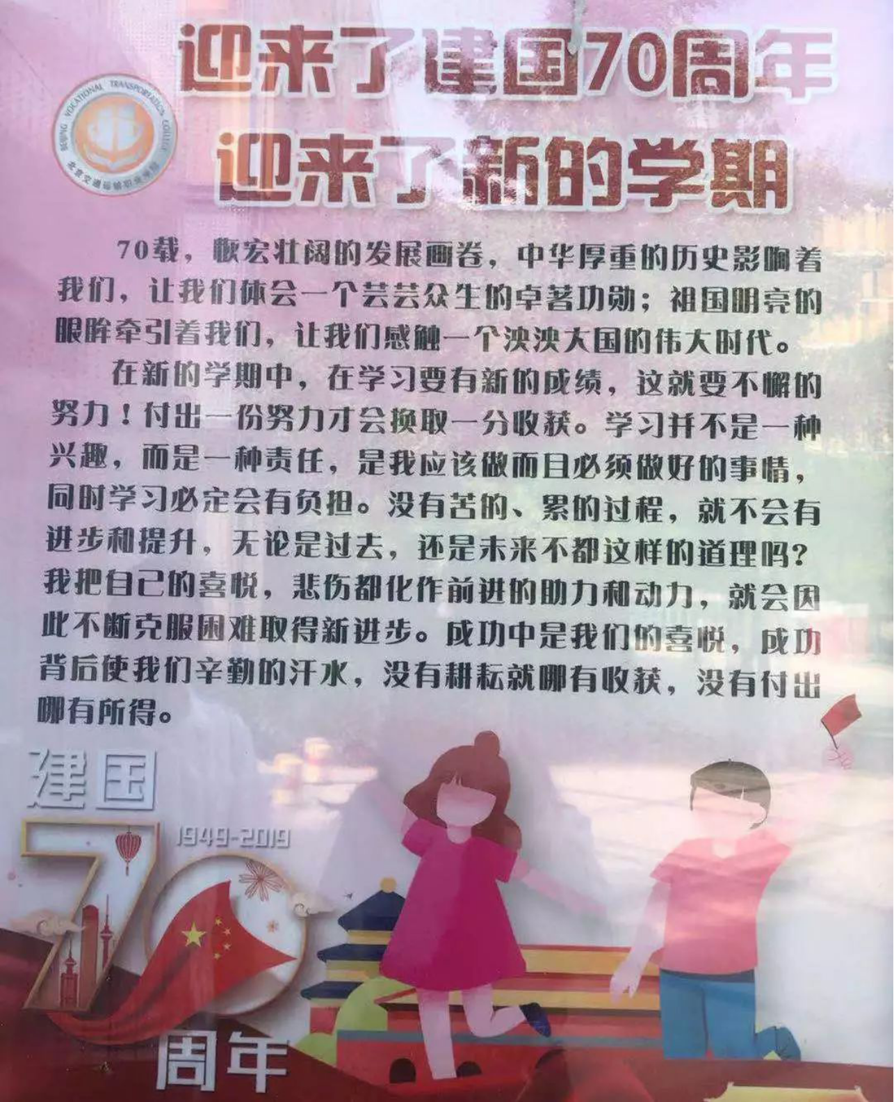 教育不能一蹴而就,为营造良好的开学氛围,在潜移默化中真正落实好开学第一课 ,学院在教学楼、食堂等重要场所悬挂了大小小的德育横幅,以期同学们将良好行为规范铭刻在心中。