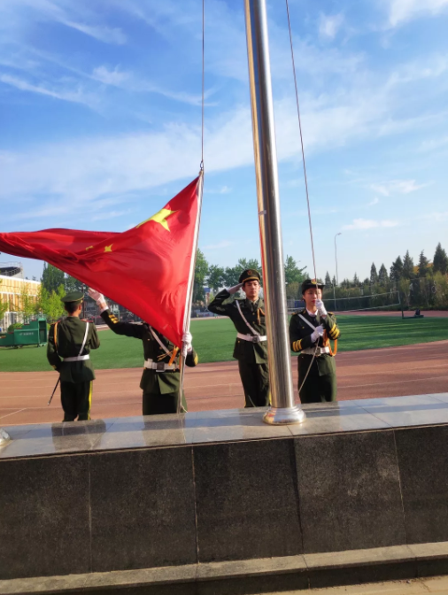 操场上空,五星红旗迎风飘扬。那抹鲜艳的红色映衬着蓝天的景象,早已铭刻在每个北交院人心中。对祖国的热爱,对美好生活的向往,随着这片“中国红”永驻心间。