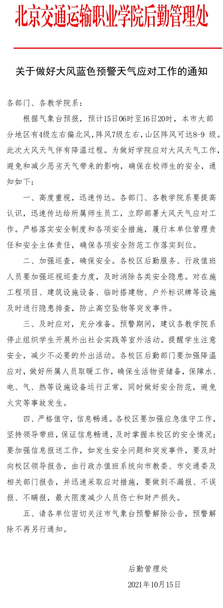 2021年10月15日 作者:后勤管理处  来源:后勤管理处