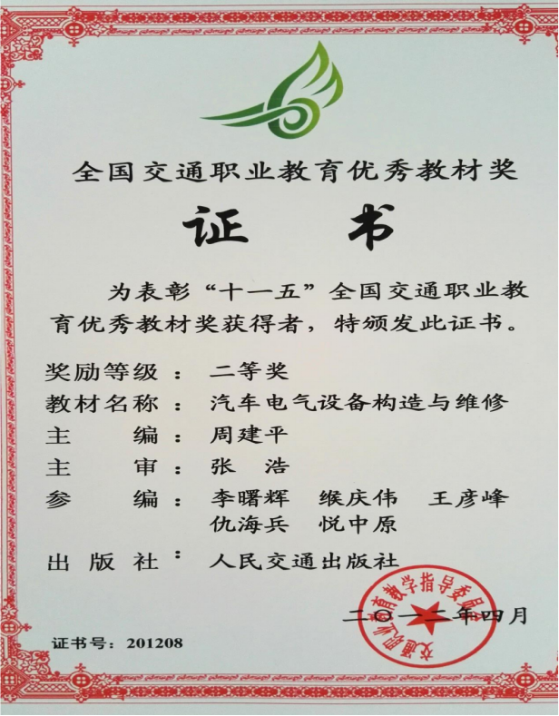4.教材获得“全国交通运输职业教育教学指导委员会”二等奖证书