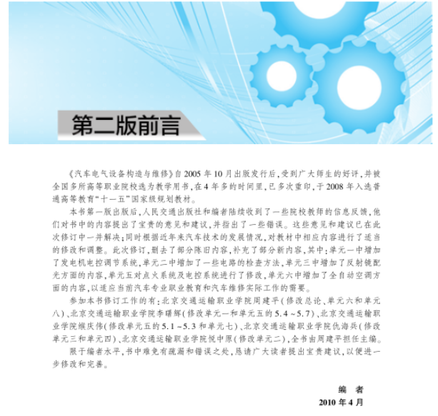 2.《汽车电气设备构造与维修》“十一五”国家级规划教材封面及前言