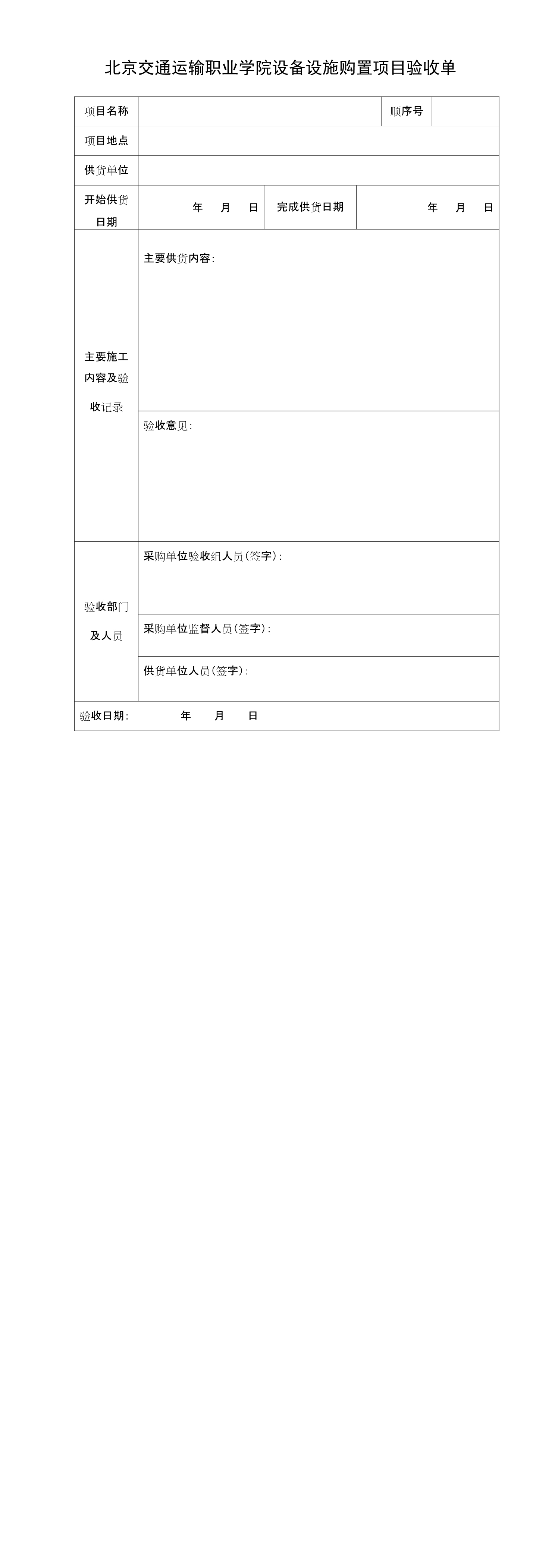 设备设施购置项目验收单