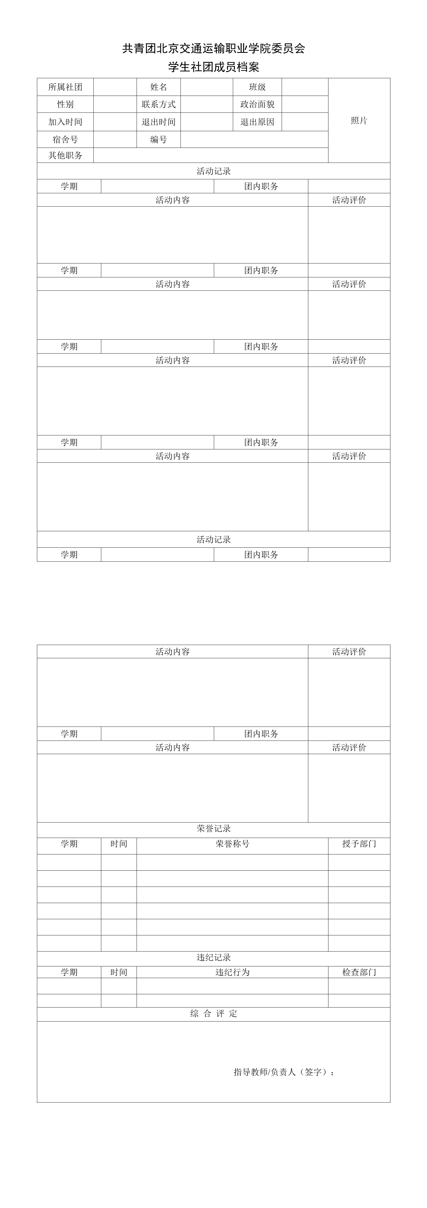 社团成员档案