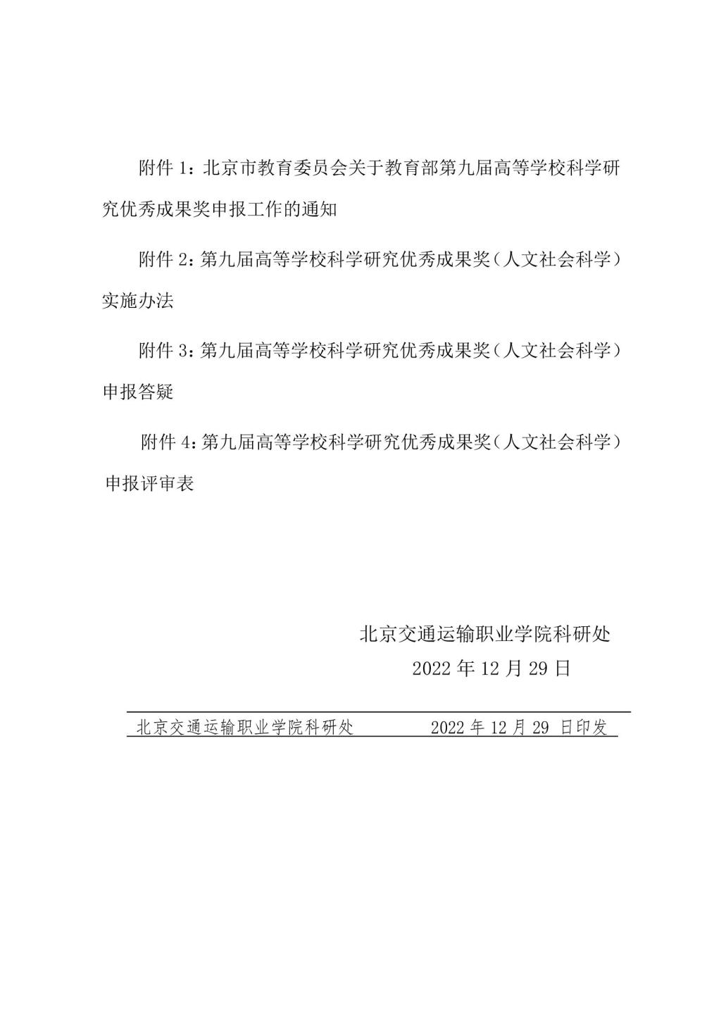 关于教育部第九届高等学校科学研究优秀成果奖(人文社会科学)申报工作的通知