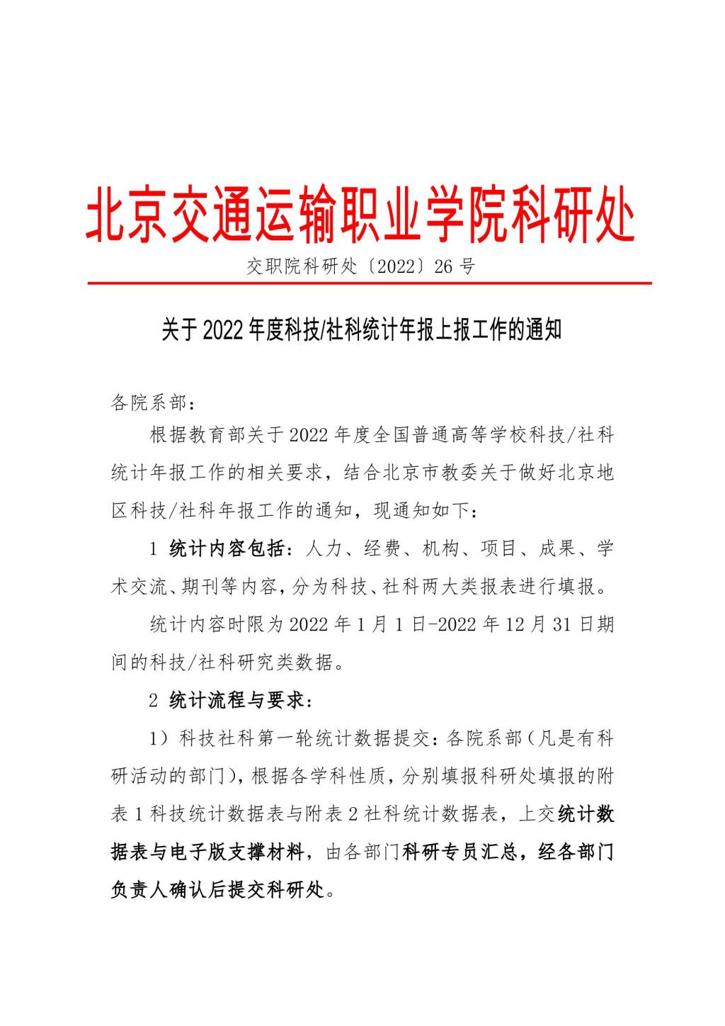关于2022年度科技社科统计年报上报工作的通知