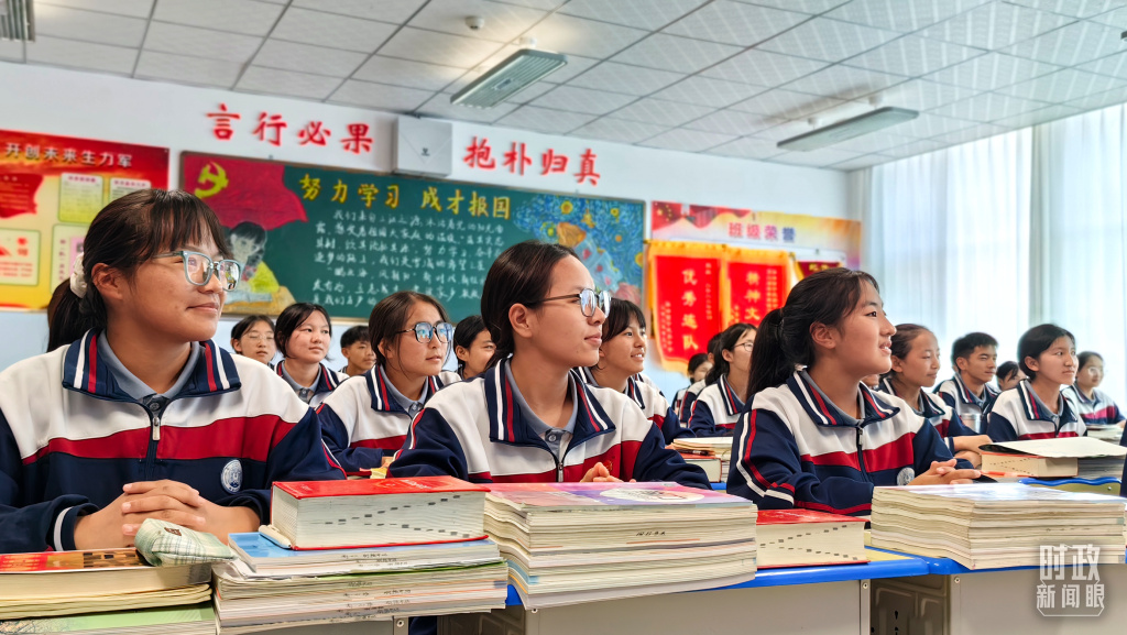 青海果洛西宁民族中学高一(1)班的“新时代、新家乡”主题思政课。(总台央视记者段德文拍摄)